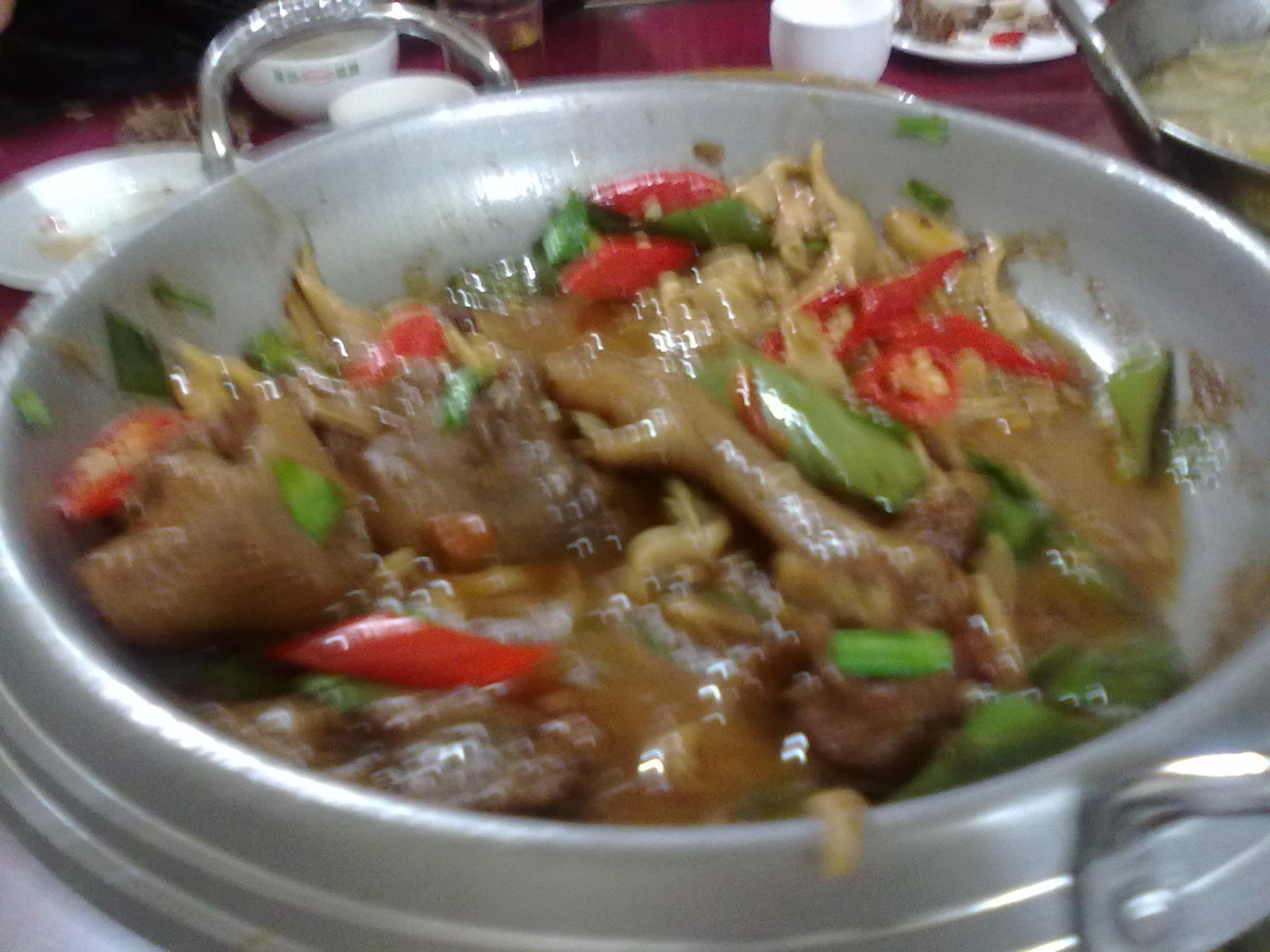 看見美味了,手有點抖,照的不太清楚,辣炒雞胗和麻辣雞,看著色香味,絕!