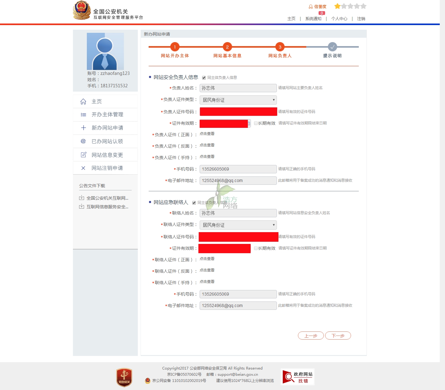 3、網(wǎng)站負(fù)責(zé)人基本信息完善