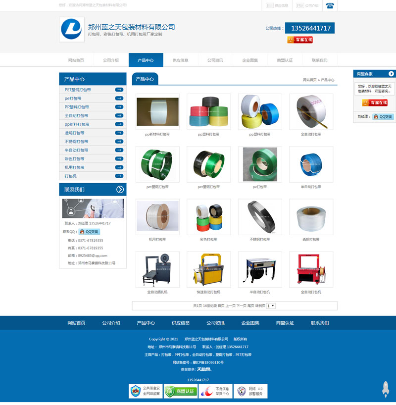 鄭州藍(lán)之天包裝材料有限公司打包帶網(wǎng)站制作完成