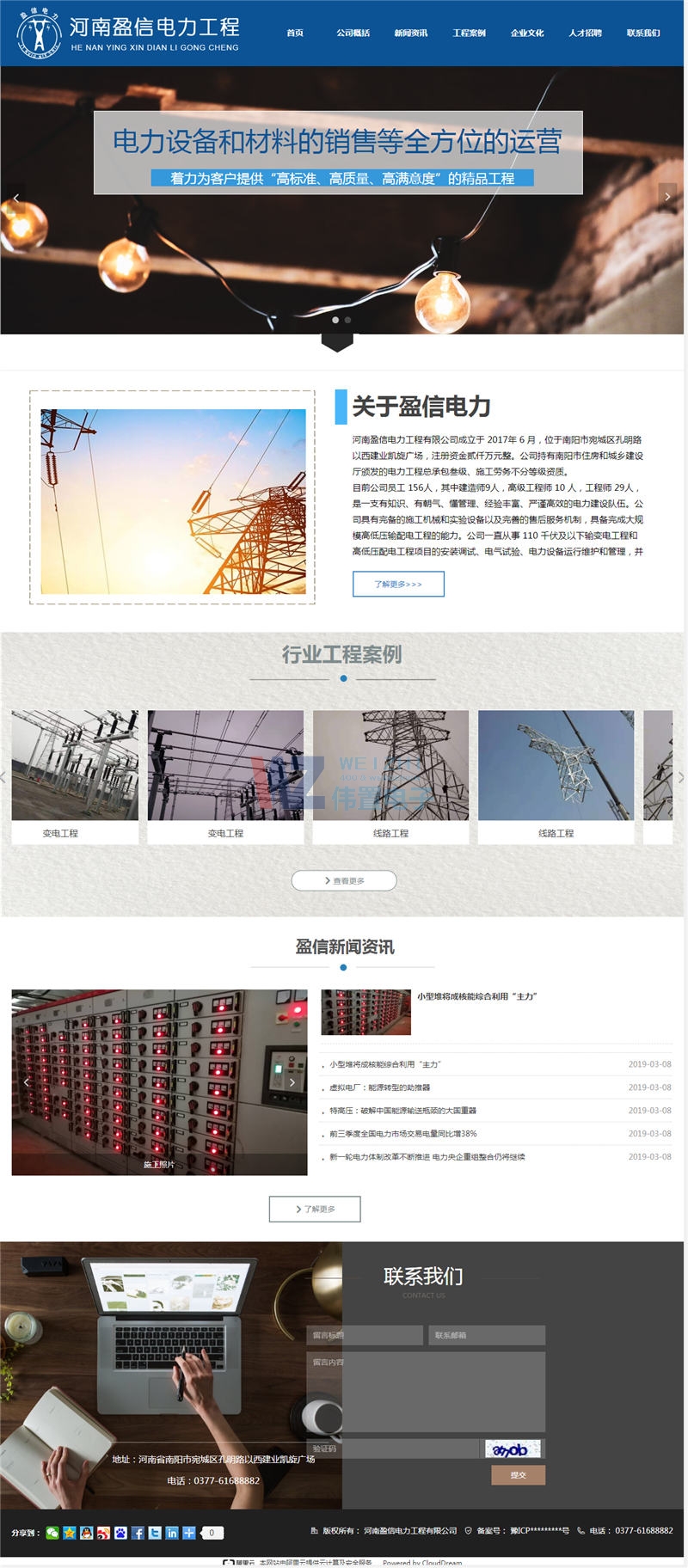 河南某信電力工程的新做的網(wǎng)站建設(shè)屬于展示型,網(wǎng)站上主要展示該企業(yè)的一些信息,比方:工程案例,企業(yè)文化等。網(wǎng)站選用藍(lán)色為導(dǎo)航欄目顏色,最主要一點(diǎn)是和該公司logo相匹配。域名選用了該企業(yè)的公司簡稱全拼英文,域名與網(wǎng)站名稱相對應(yīng)有助于百度收錄,也有助于客戶記住該企業(yè)。本網(wǎng)站為我公司與河南聯(lián)通合作的阿里云建站項(xiàng)目