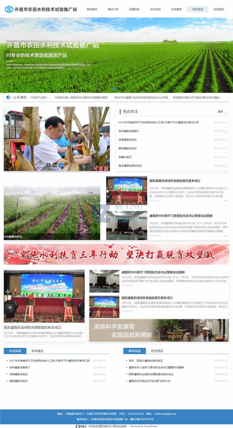 網(wǎng)站首頁(yè)重點(diǎn)展示了農(nóng)田水利推廣站重點(diǎn)信息,首頁(yè)banner用了稻田的圖片+公司名,更能體現(xiàn)農(nóng)田水利的主信息。該網(wǎng)站頁(yè)面比較干凈,板塊設(shè)計(jì)合理。