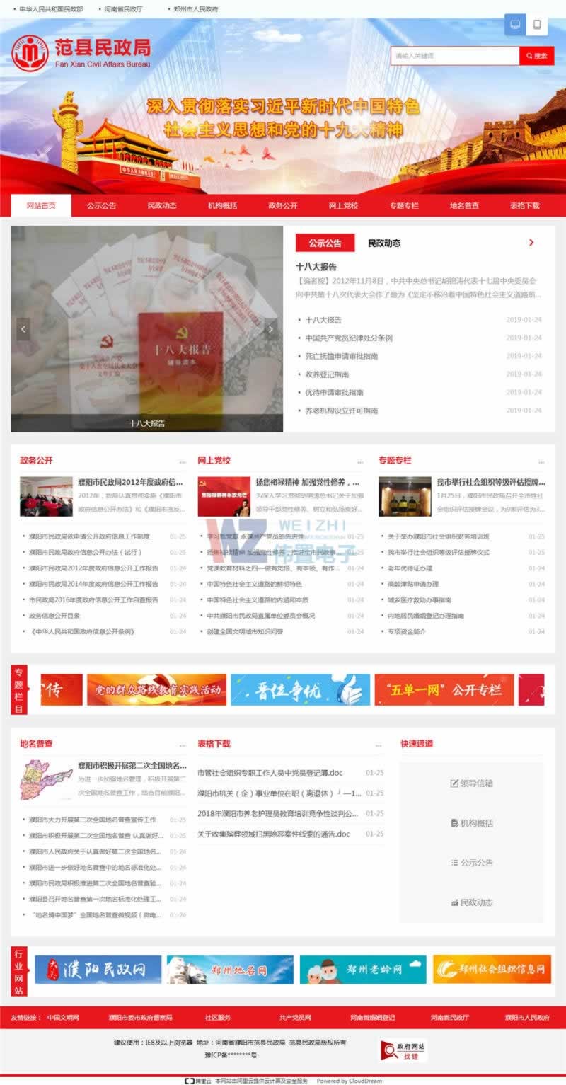 網(wǎng)站首頁(yè)重點(diǎn)展示了民政局的信息,該網(wǎng)站頁(yè)面展示比較細(xì),信息也比較多,板塊設(shè)計(jì)合理。重點(diǎn)突出民政局特點(diǎn),展示民政局的形象。