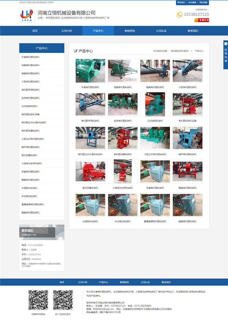 河南立恒機(jī)械有機(jī)肥粉碎設(shè)備網(wǎng)站上線