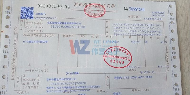 淘淘寵物健康管理7月份網(wǎng)站建設(shè)發(fā)票信息如下所示:
