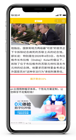 首屏頂部允許嵌入不超過(guò)一屏面積10%的優(yōu)質(zhì)廣告;廣告位上有明確的【廣告】字樣標(biāo)識(shí);圖片清晰、樣式美觀,視覺(jué)體驗(yàn)好,色彩與頁(yè)面整體協(xié)調(diào)。